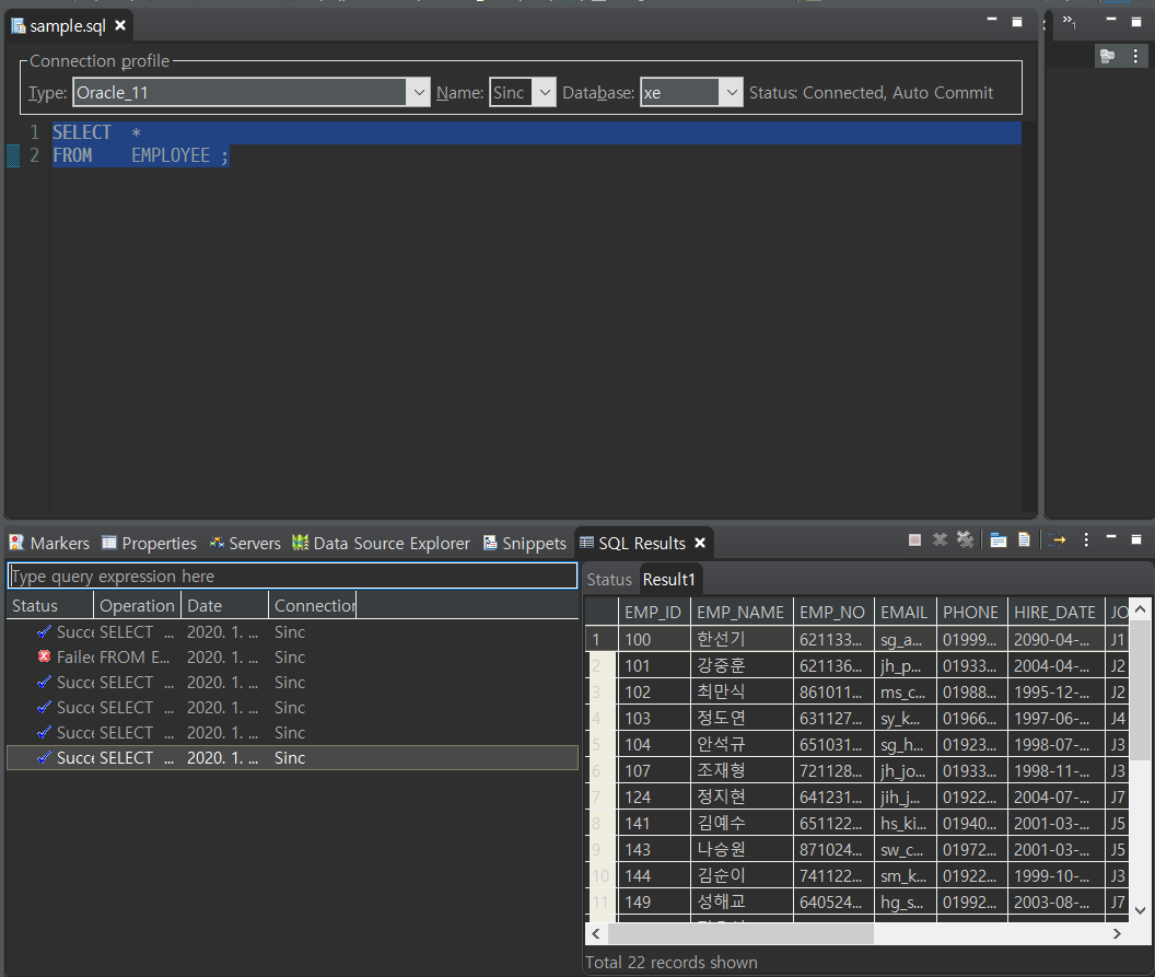 Java 프로젝트(sinc_oracle) 생성 후 작업