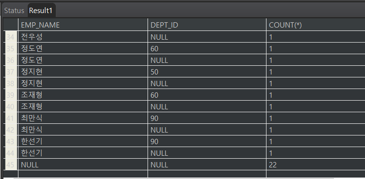 GROUP BY ROLLUP( EMP_NAME, DEPT_ID ) ;
