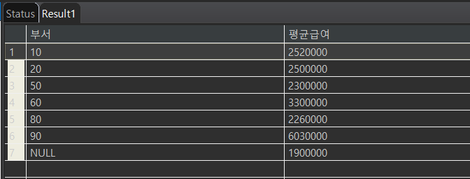 (GROUP BY에 명세된 컬럼은 SELECT절에 명세될 수 있다. 기본 컬럼은 불가)