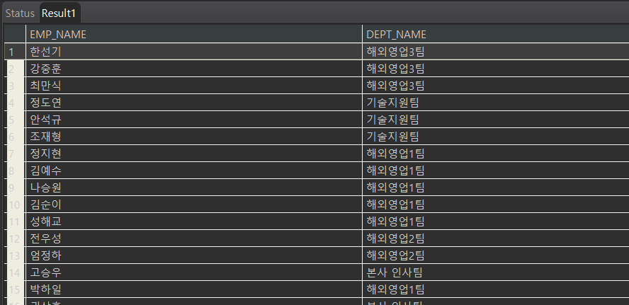 - NATURAL JOIN: 부모의 기본키와 자식의 외래키가 같은 경우(칼럼이 이름이 같은 경우), 알아서 JOIN해준다.