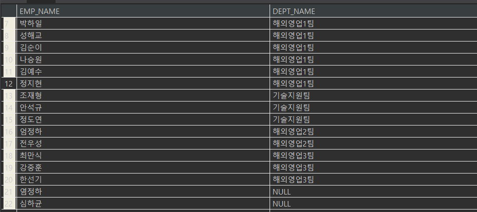 - LEFT JOIN: 왼쪽 테이블을 모두 출력하겠다는 의미