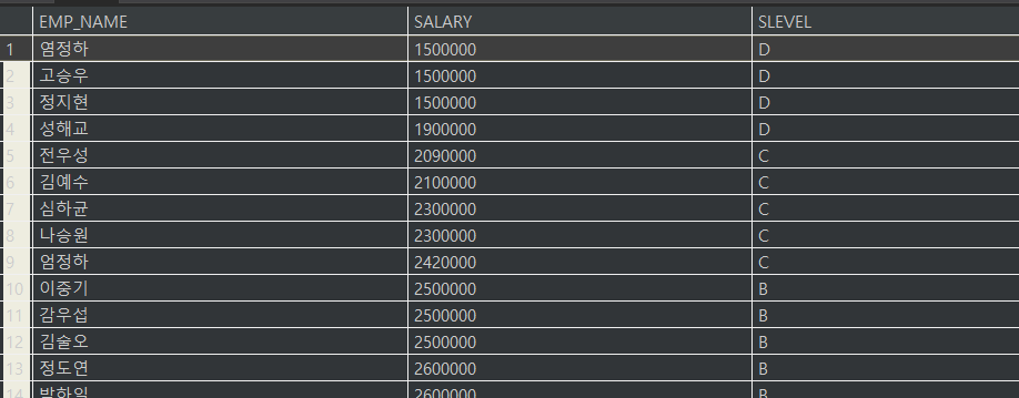 JOIN SAL_GRADE S ON (E.SALARY BETWEEN S.LOWEST AND S.HIGHEST)
