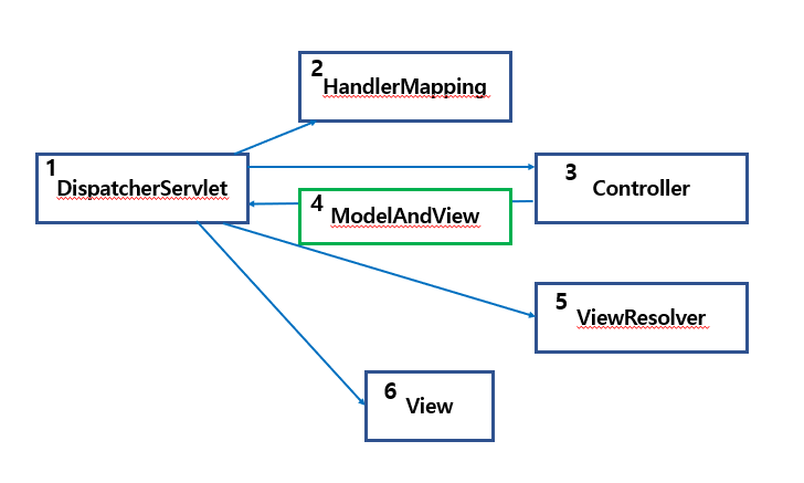 컨트롤러: 요청 처리 및 흐름 제어 담당(프론트 컨트롤러- 모든 요청을 받는다, 애플리케이션 컨트롤러 - @Controller)
