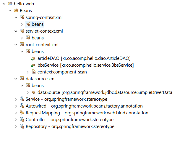 - Root Context: Spring-MVC와 분리되어 빈을 관리하고 싶을때(Services빈이나 Repositories빈 등), 오픈API를 서비스하고 싶은 경우
