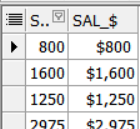 SELECT SAL, TO_CHAR(SAL, '$999,999') AS SAL_$