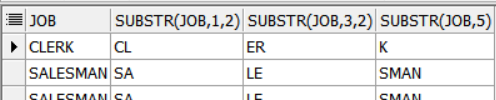 SELECT JOB, SUBSTR(JOB, 1, 2)