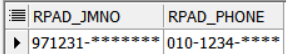 SELECT RPAD('971231-', 14, '*') AS RPAD_JMNO