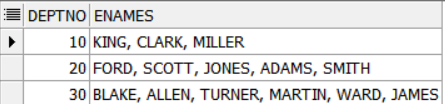 , LISTAGG(ENAME, ', ') WITHIN GROUP(ORDER BY SAL DESC) AS ENAMES