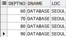 VALUES(DEPT_SEQUENCE.NEXTVAL, 'DATABASE', 'SEOUL');