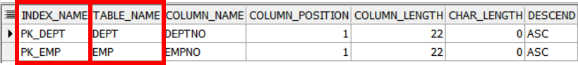 FROM USER_IND_COLUMNS;