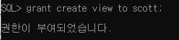 : SCOTT 계정은 뷰 생성 권한이 없다. 따라서 권한 부여가 필요함