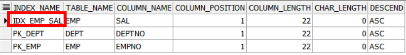 CREATE INDEX IDX_EMPIDX_EMPNO