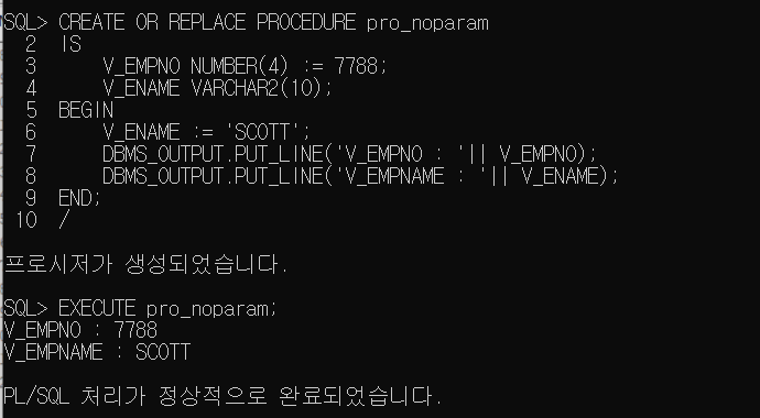 - 변수의 기본 값 지정 - ex. V_DEPTNO NUMBER(2) DEFAULT 10;