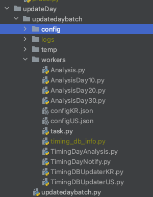 3. task.py라는 파일을 생성한다. Doc에는 나와있지 않지만 task.py는 python batch runner를 관리하기 위해 본인이 생성한 파일이다. 배치가 많이 없다면 필요없겠지만 배치가 많다면 저렇게 하나의 Runner전용 파일을 만들어 관리하는 것도 괜찮은 거 같다.