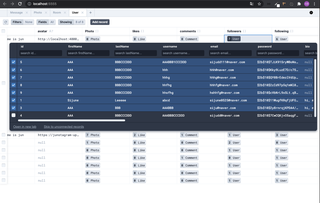 - prisma studio라는 툴을 이용하여 브라우저에서 데이터 조회 및 조작을 쉽게 할 수 있다.