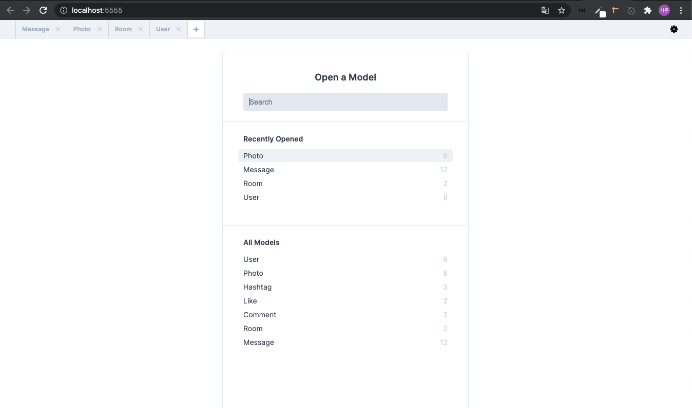 위 명령어를 사용하면, 관리하고 있는 모델을 브라우저에서 조회 및 조작이 가능하다.