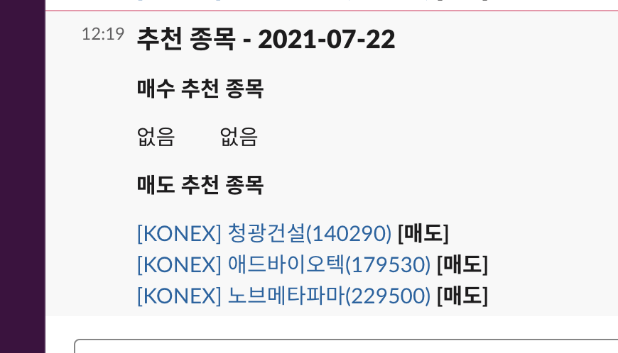"text": "*매도 추천 종목*",