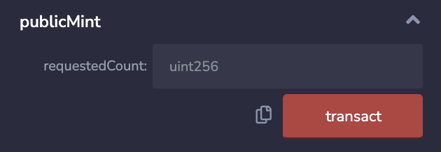 - setPublicMintEnabled를 true로 설정하고 transact 진행