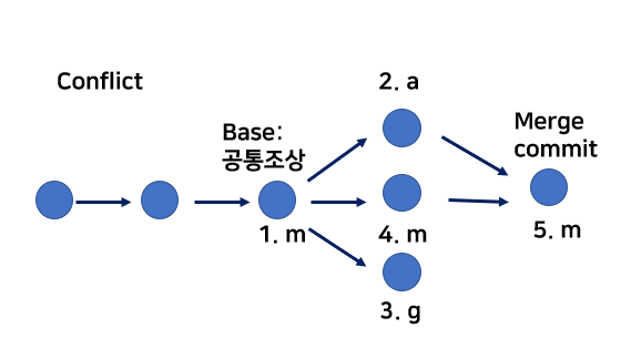 # 3 way merge로 해결안되는 부분만 수정하면 된다.