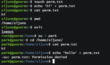 $ mkdir perm;cd perm;echo 'hi' > perm.txt