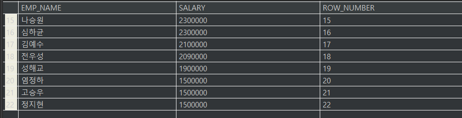 //ROWNUM = 3인 경우는 출력되지 않는다.