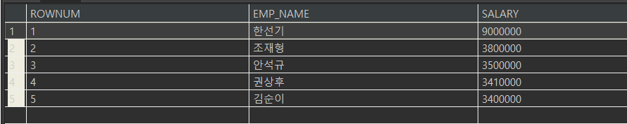 SELECT ROWNUM, EMP_NAME, SALARY